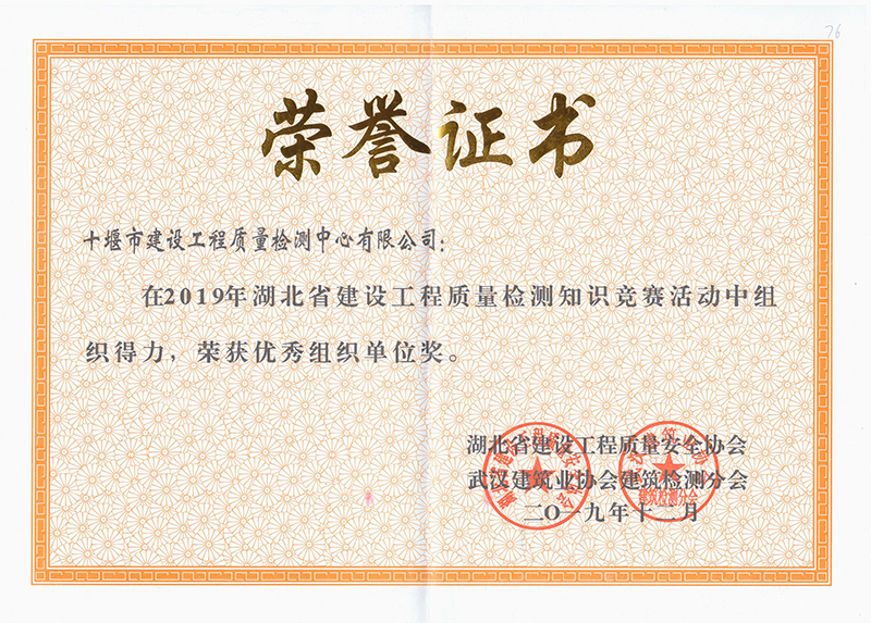 2019.12湖北省工程質(zhì)量檢測知識競賽活動(dòng)獲優(yōu)秀組